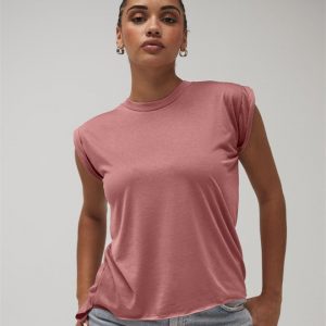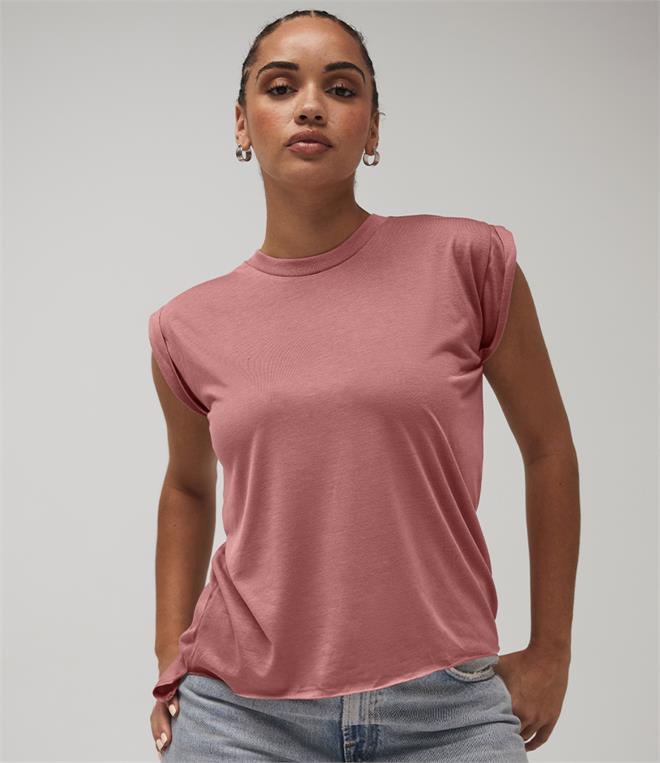 Bella Ladies Flowy Rolled Cuff Muscle T-Shirt